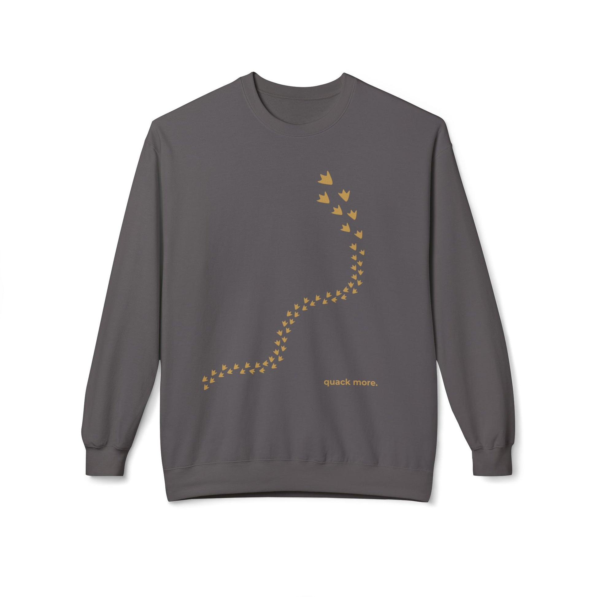 Follow the little footprints that started it all. The Duck Tracks Sweatshirt features our subtle gold duck trail printed across the chest for a minimal, nature-inspired look that feels soft, cozy, and effortlessly charming.